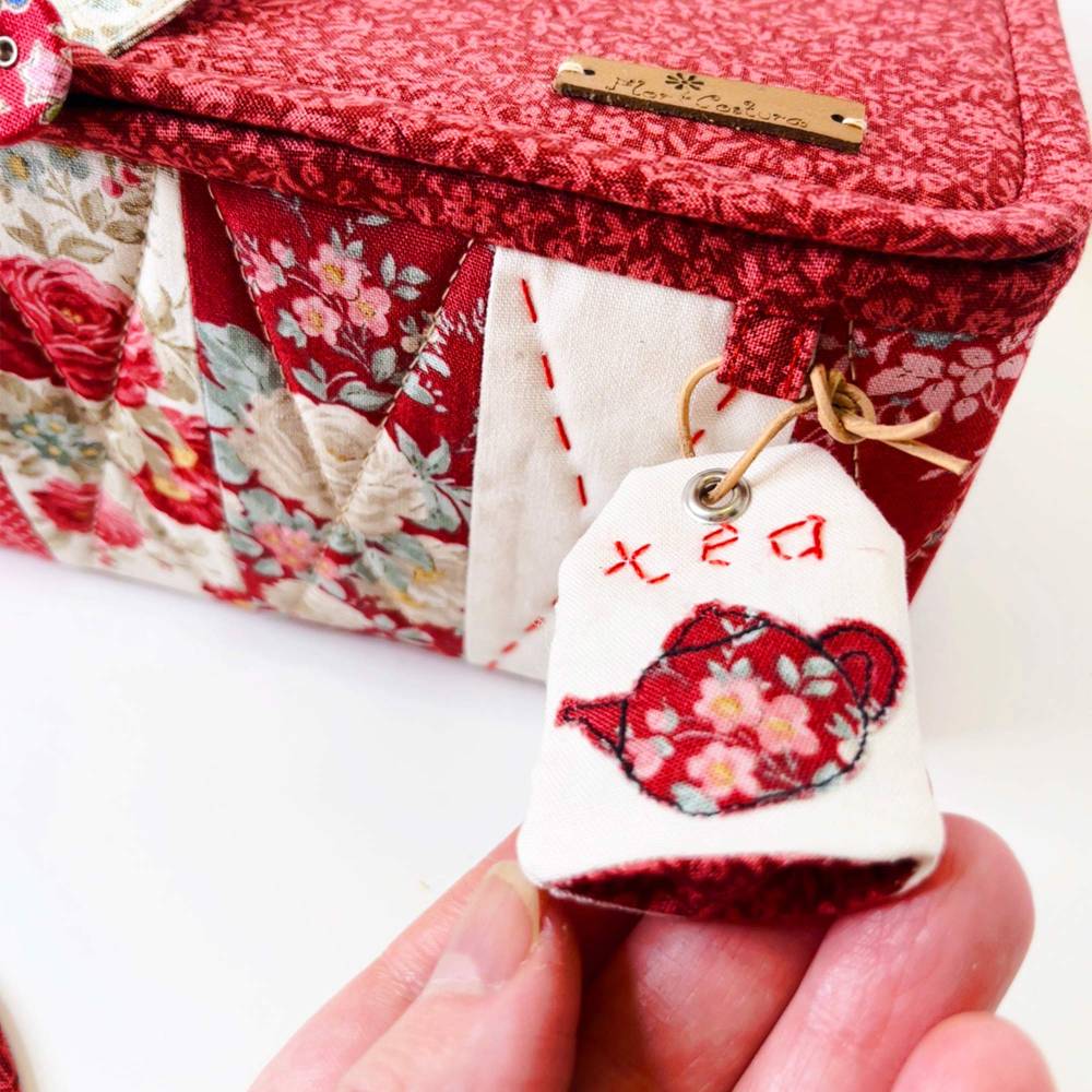 - Schild zum Anhängen (wahlweise mit Applikation Teekanne oder Nähmaschine)
