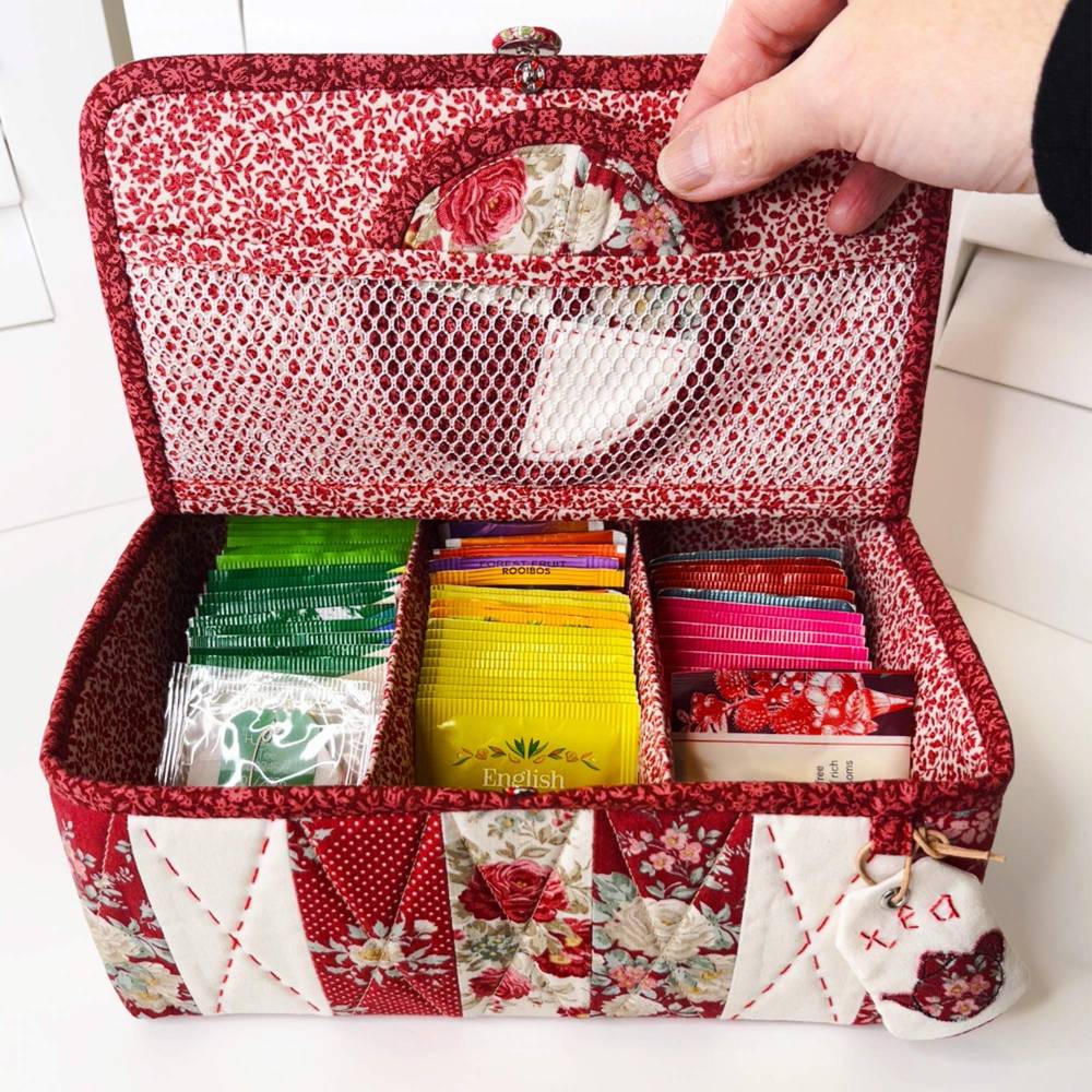 - Teebox mit drei Innenreihen für kleine und große Teebeutel sowie transparentem Fach im Deckel