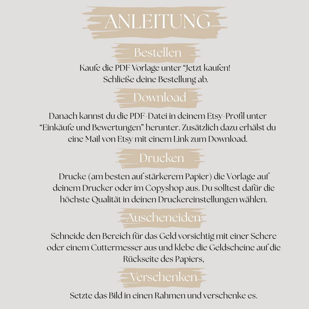 Mit diesem Geldgeschenk zum Selber drucken verschenkst du Geld auf eine originelle und stilvolle Art – perfekt für Geburtstage, Hochzeiten, Jubiläen, Abschiede oder andere besondere Anlässe.