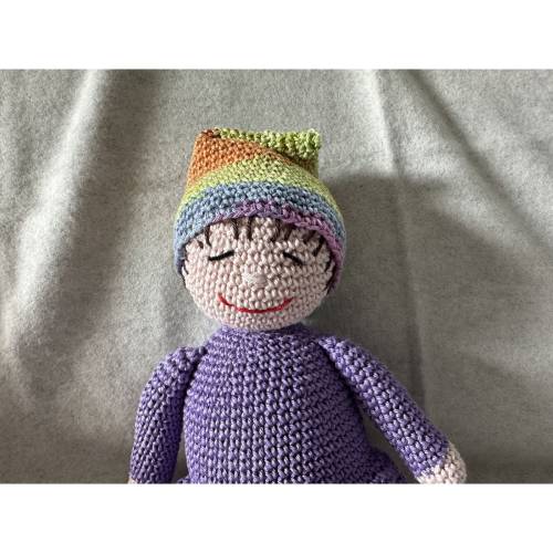 Kuschelmonster Sheepy wird, unter Verwendung des angegebenen Materials, ca. 27 cm groß.