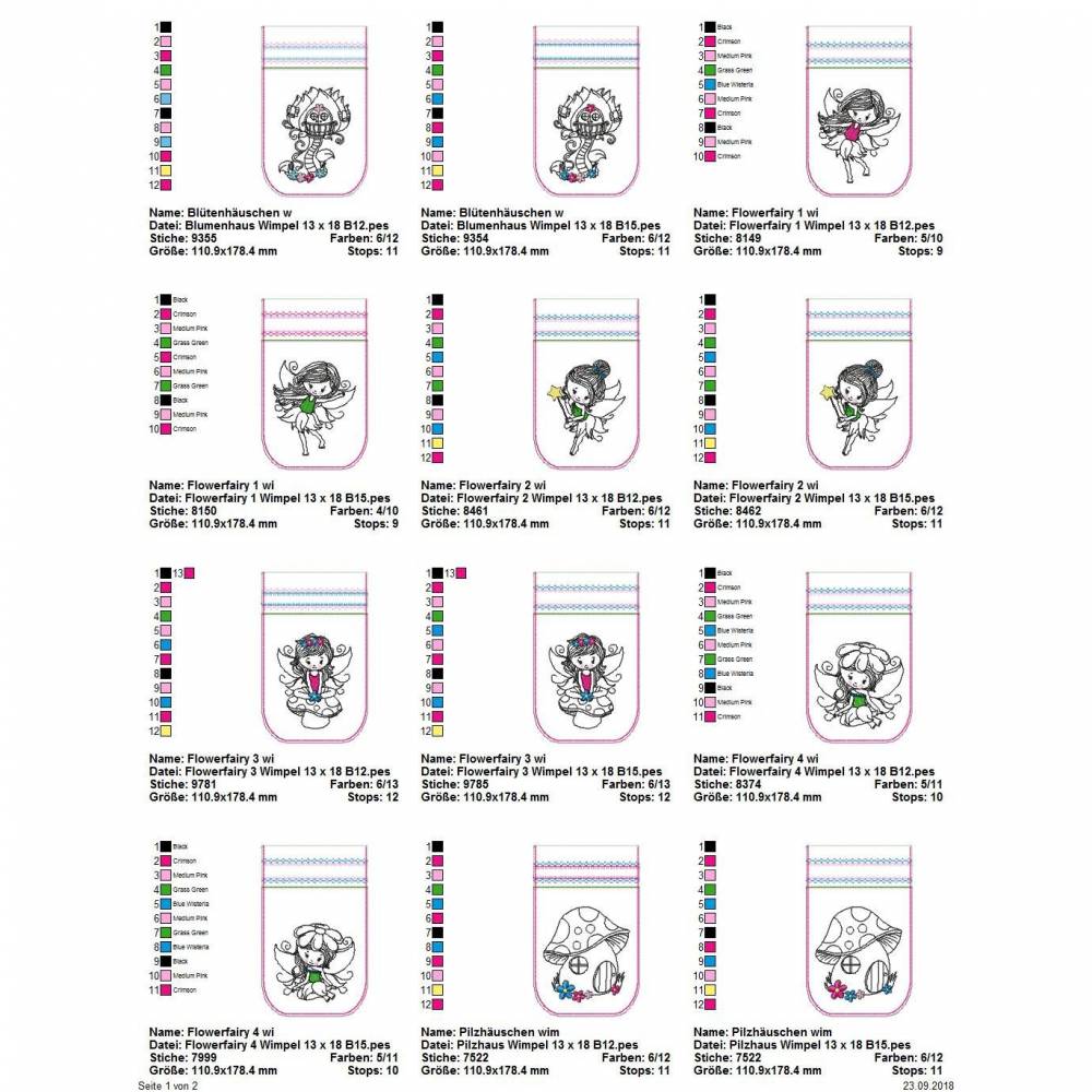 Die genauen Größen und die Stichanzahl der einzelnen Dateien findet Ihr in der Farbansicht bei den Vorschaubildern.