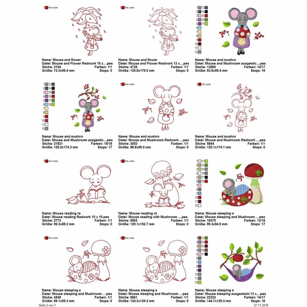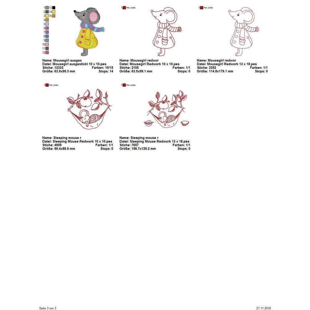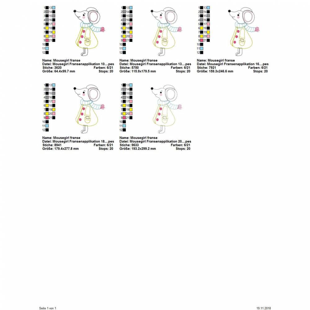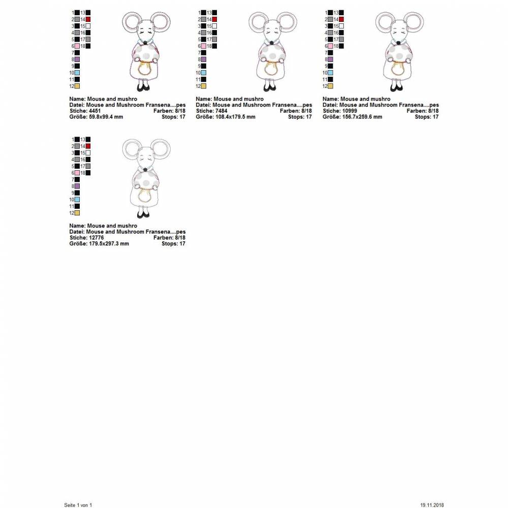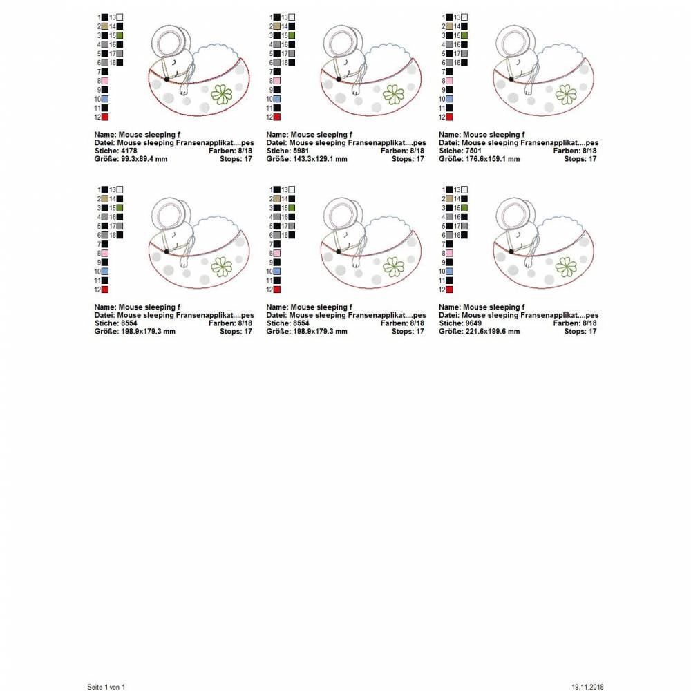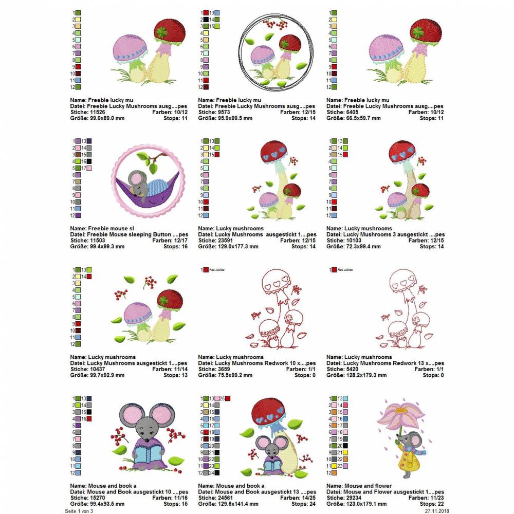 Die genauen Größen und die Stichanzahl der einzelnen Dateien findet Ihr in der Farbansicht bei den Vorschaubildern.