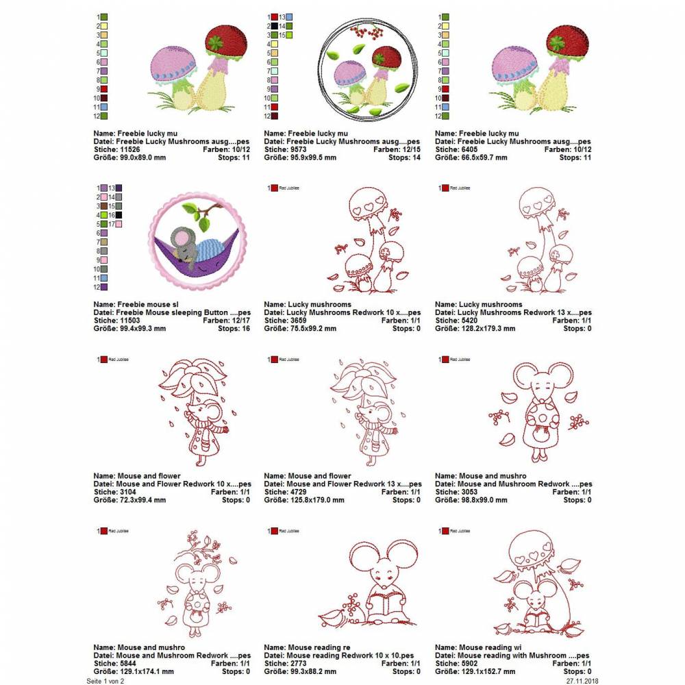 Die genauen Größen und die Stichanzahl der einzelnen Dateien findet Ihr in der Farbansicht bei den Vorschaubildern.