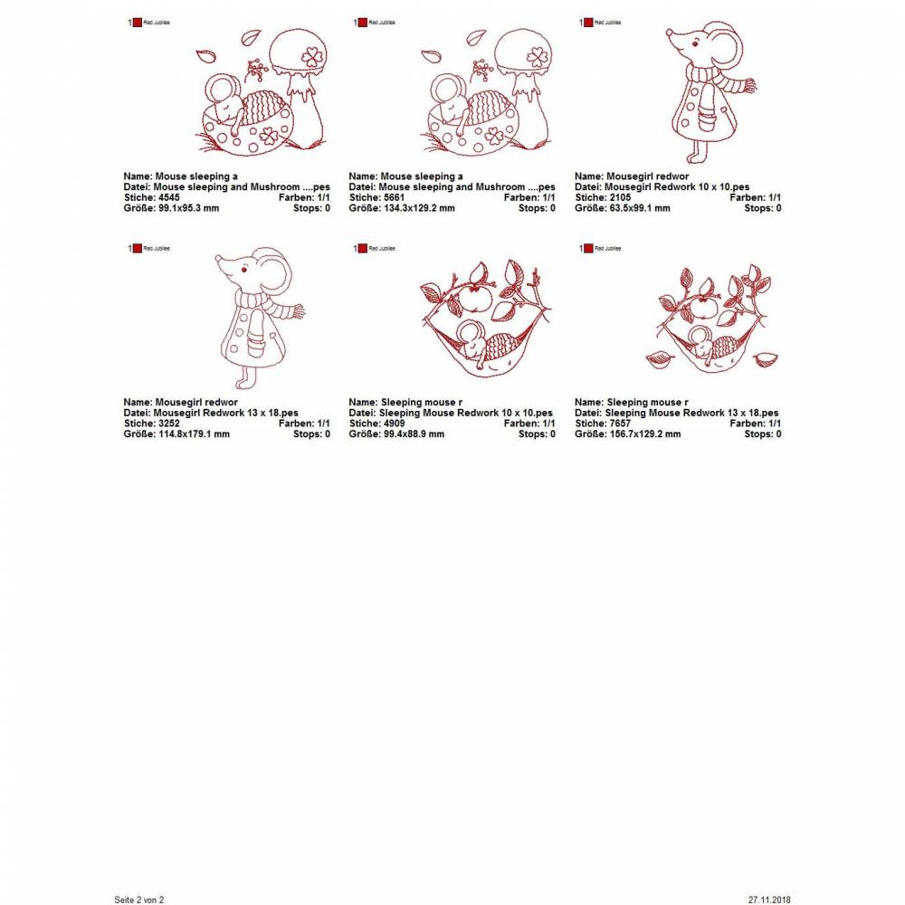 Digitale Stickserie "Little Mouse Redwork" für den 10x10 - 13x18 cm (4x4 - 5x7") Stickrahmen