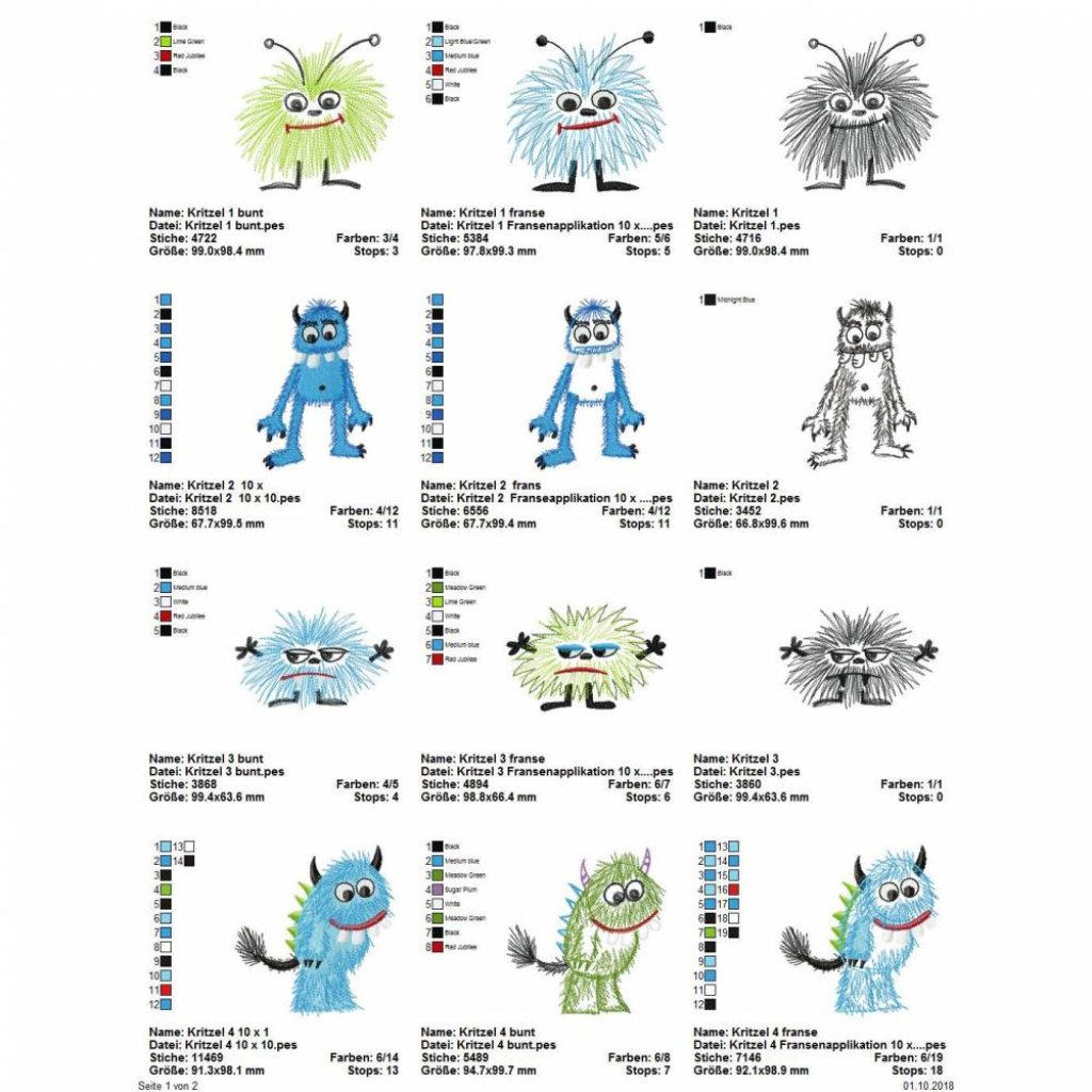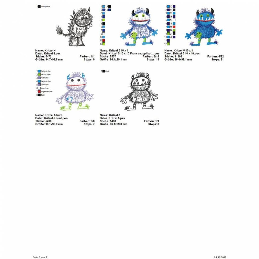 Die genauen Größen und die Stichanzahl der einzelnen Dateien findet Ihr in der Farbansicht bei den Vorschaubildern.