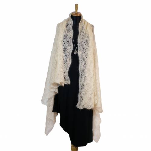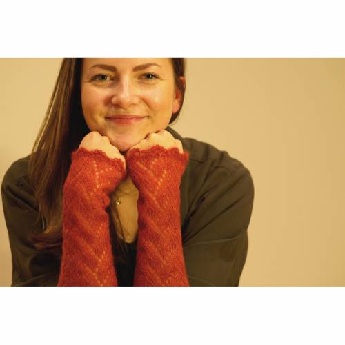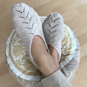 Dieser zarte, weibliche Pullover mit Blüten-Ajourmuster in Rundpasse wird von oben nach unten gestrickt. Man beginnt mit dem Anschlag beim Halsausschnitt, strickt die Blütenpasse in Runden im Ajourmuster, danach wird das Gestrick für die Raglanschrägen in vier Teile aufgeteilt, rechter Ärmel, Vorderteil, linker Ärmel, Rückenteil – die Raglanschrägen werden bis zum Armausschnitt gearbeitet.