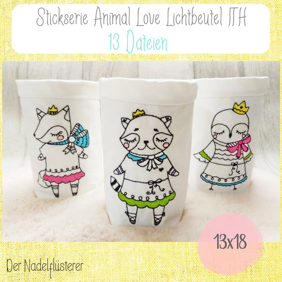 Digitale Stickserie "Animal Love Lichtbeutel ITH" für den 13x18 cm (5x7") Stickrahmen