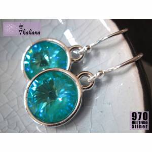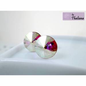 Für diese wunderhübschen Ohrstecker habe ich in Deutschland gefertigte Fassungen mit jeweils einem Swarovski Element in 6mm-Größe bestückt. Die Fassungen sind natürlich bestens verträglich und hochwertig versilbert - eine tolle Qualität und ein gutes Gefühl, einen hierzulande tätigen Betrieb zu unterstützen anstatt in billige Fernost-Ware zu investieren ;)