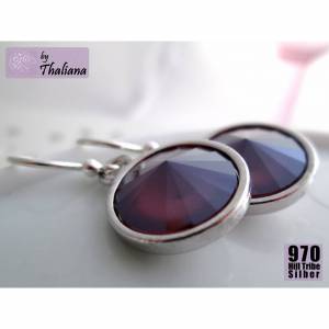 Superschöne, funkelnde Swarovski Elements in Rivoli-Form (ROT, relativ kalt vom Farbton her und absolut ohne andere Farbeinschläge!) habe ich montiert in versilberten, sehr hochwertigen Fassungen der Qualitätsmarke TierraCast aus den USA.