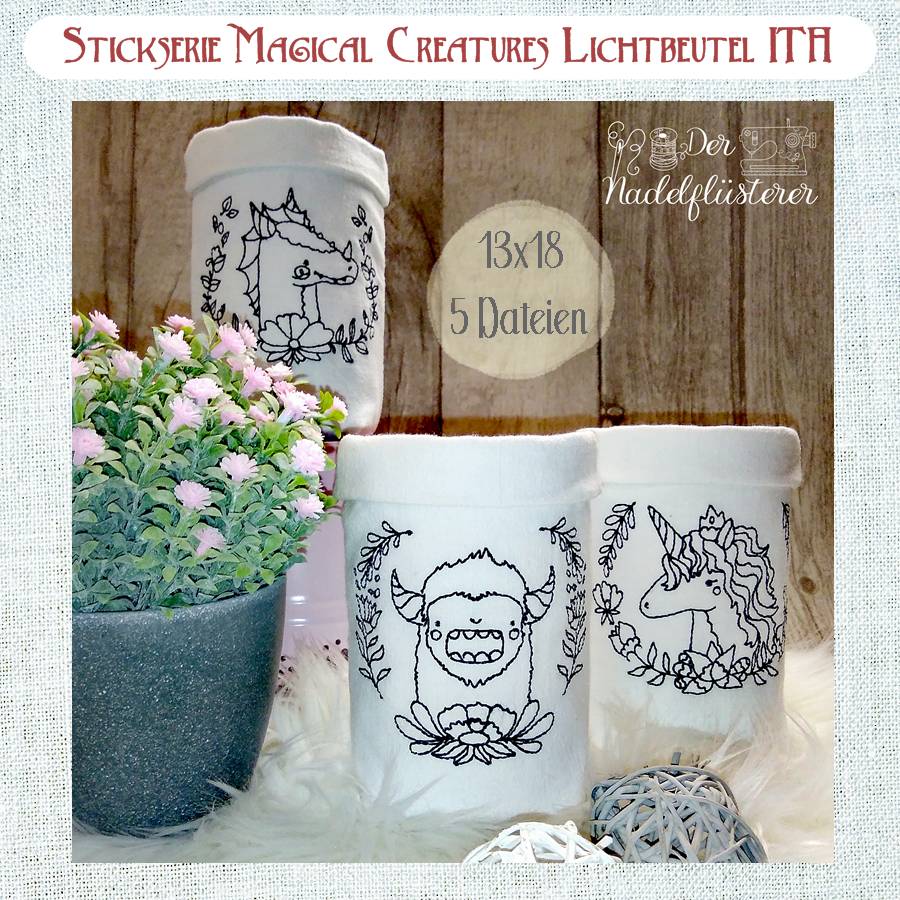 Digitale Stickserie "Magical Creatures Lichtbeutel ITH" für den 13x18 cm (5x7") Stickrahmen