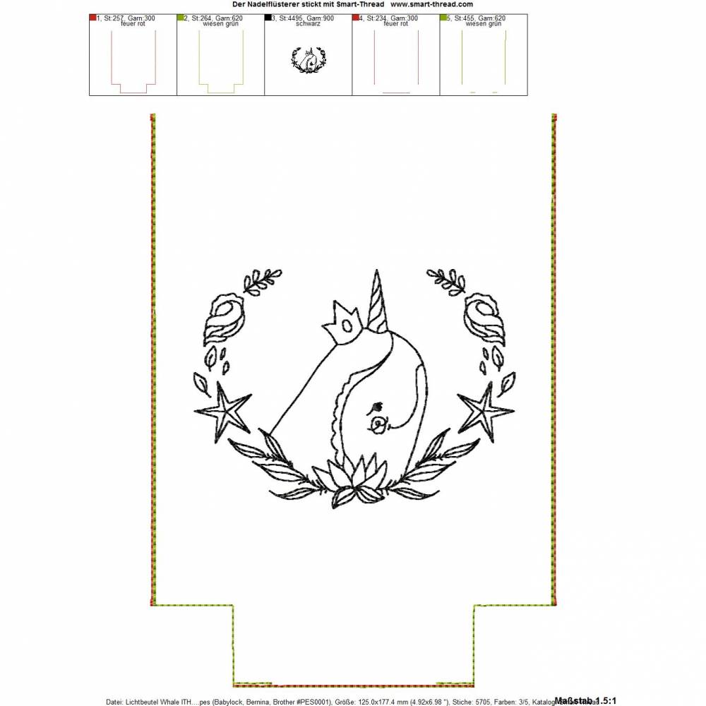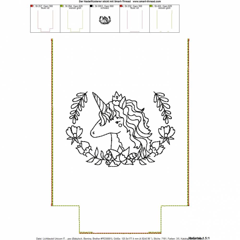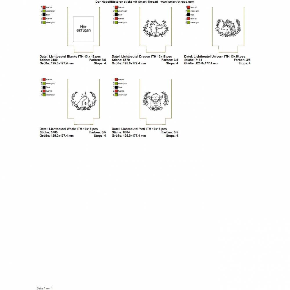 In dieser Serie sind insgesamt 5 digitale Stickdateien für den 13x18 cm (5x7") Stickrahmen enthalten. Eine davon ist ein Blanko Lichtbeutel, auf dem Ihr ein eigenes Motiv aufsticken könnt.