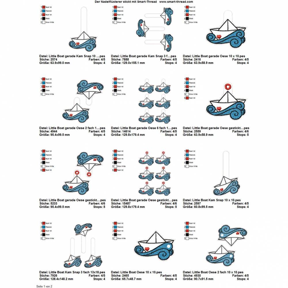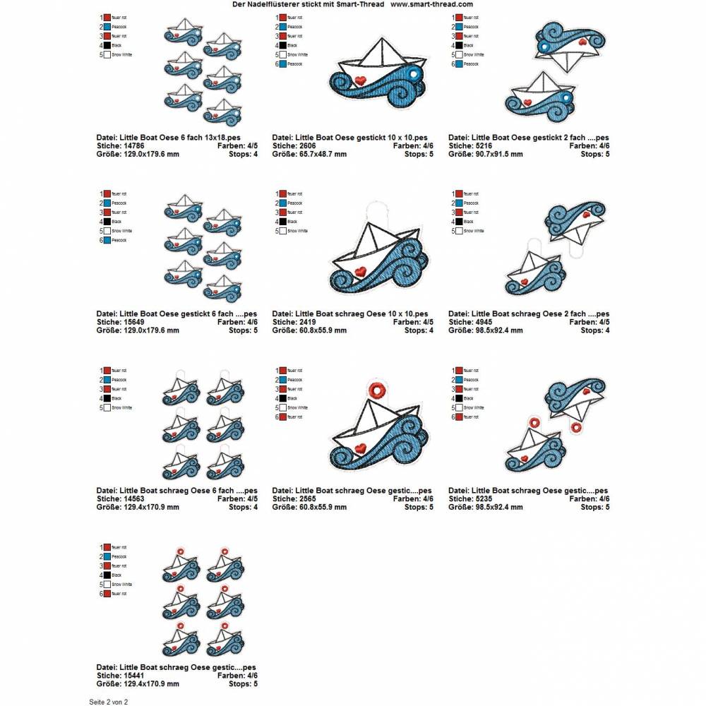 Die genauen Größen und die Stichanzahl der einzelnen Dateien findet Ihr in der Farbansicht bei den Vorschaubildern.