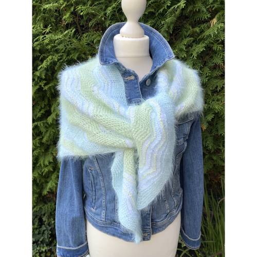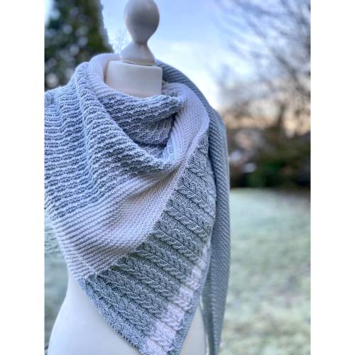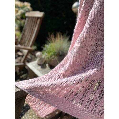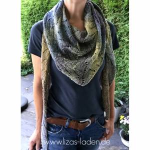Dies ist eine Anleitung für ein sommerliches Tuch aus einem melierten Leinen-Mischgarn mit einem sanften Farbverlauf. Der mittlere Teil des Tuches besteht aus einem einfachen Lacemuster, an das sich auch ungeübtere Stricker heranwagen können.