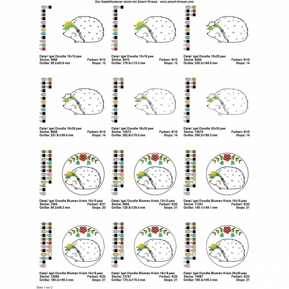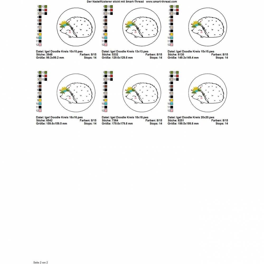 Digitale Stickdatei Igelchen Doodle 10x10 - 20x30 cm (4x4 - 8x12") Stickrahmen