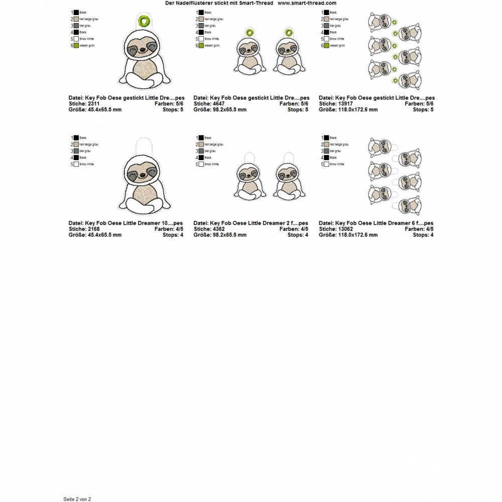 Die genauen Größen und die Stichanzahl der einzelnen Dateien findet Ihr in der Farbansicht bei den Vorschaubildern.