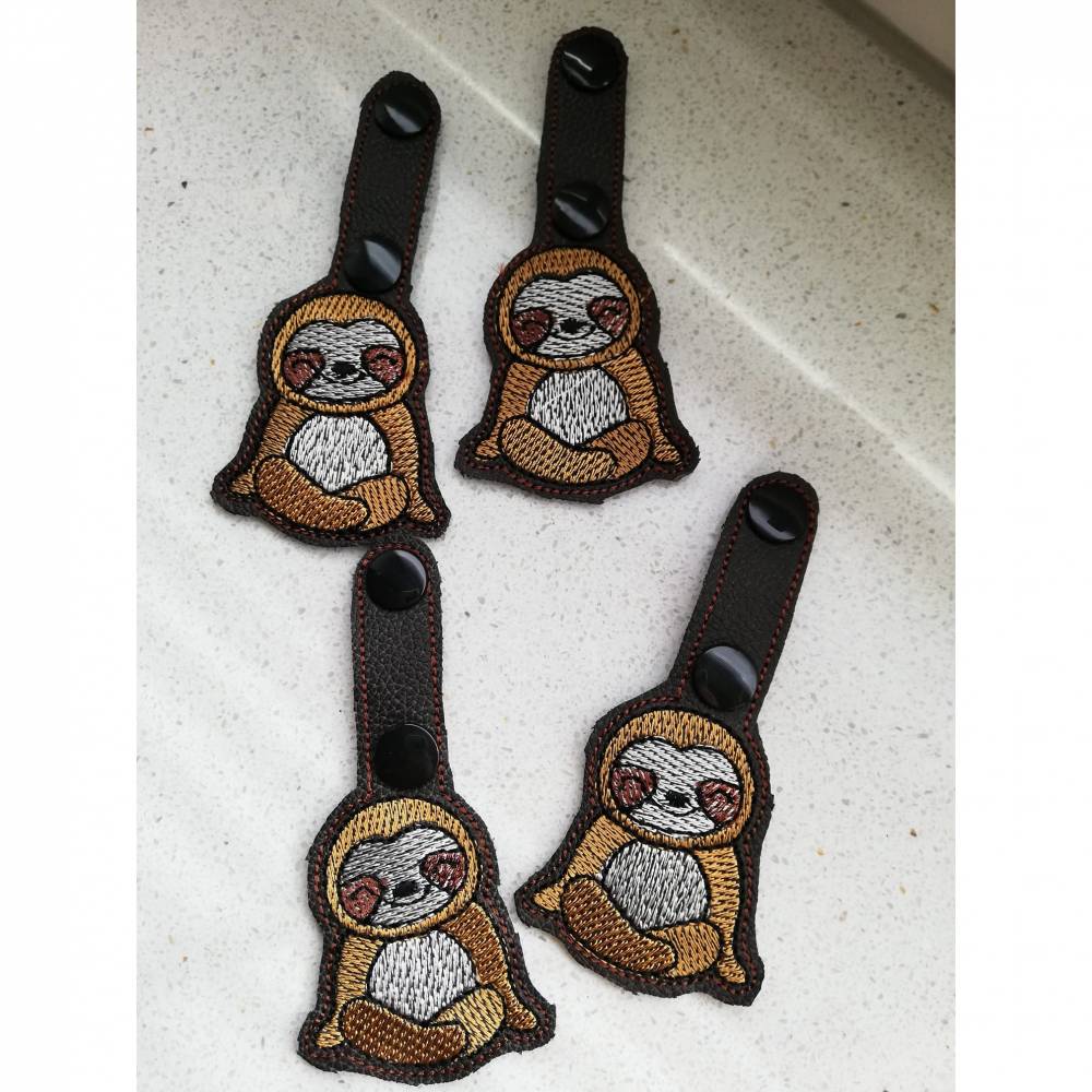 Der Anhänger wird komplett im Rahmen gestickt. Es muss je nach Anhänger nur noch eine Öse oder ein Druckknopf angebracht werden.