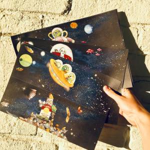 Eine Sternen-Postkarte, damit ihr von euren tollen Erlebnisse berichten könnt und natürlich einen Astronautenausweis für all die Zuhauseforscher und Bastelkünstler.