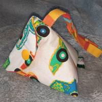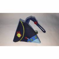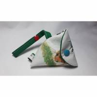 Die kleinen, dreieckig genähten Schnullertaschen mit etwa 8cm Seitenlänge sind optimal geeignet, um einen Schnulli sauber aufzubewahren. Innen- und Außenseite bestehen aus 100% Baumwollstoff, der mit etwas Vlies für einen besseren Stand verstärkt wurde.