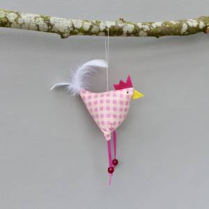 Die Stoffhühner sind gesund (können sitzen und am angebrachten Faden sogar fliegen)