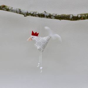 Die Stoffhühner sind gesund (können sitzen und am angebrachten Faden sogar fliegen)