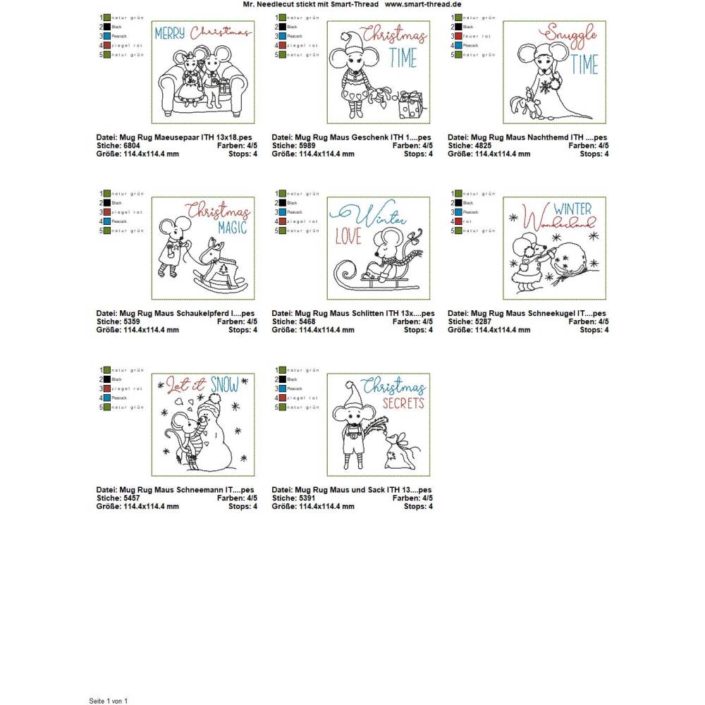 Die genauen Größen und die Stichanzahl der einzelnen Dateien findet Ihr in der Farbansicht bei den Vorschaubildern.