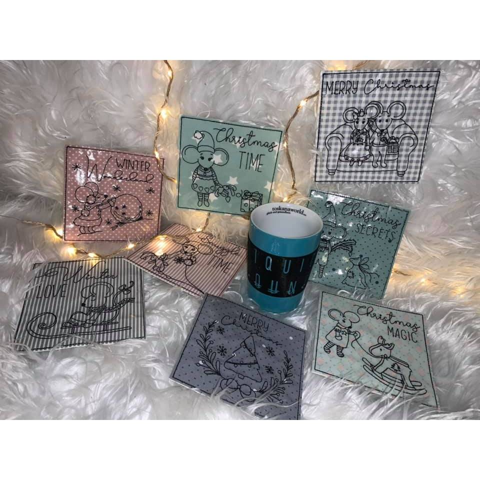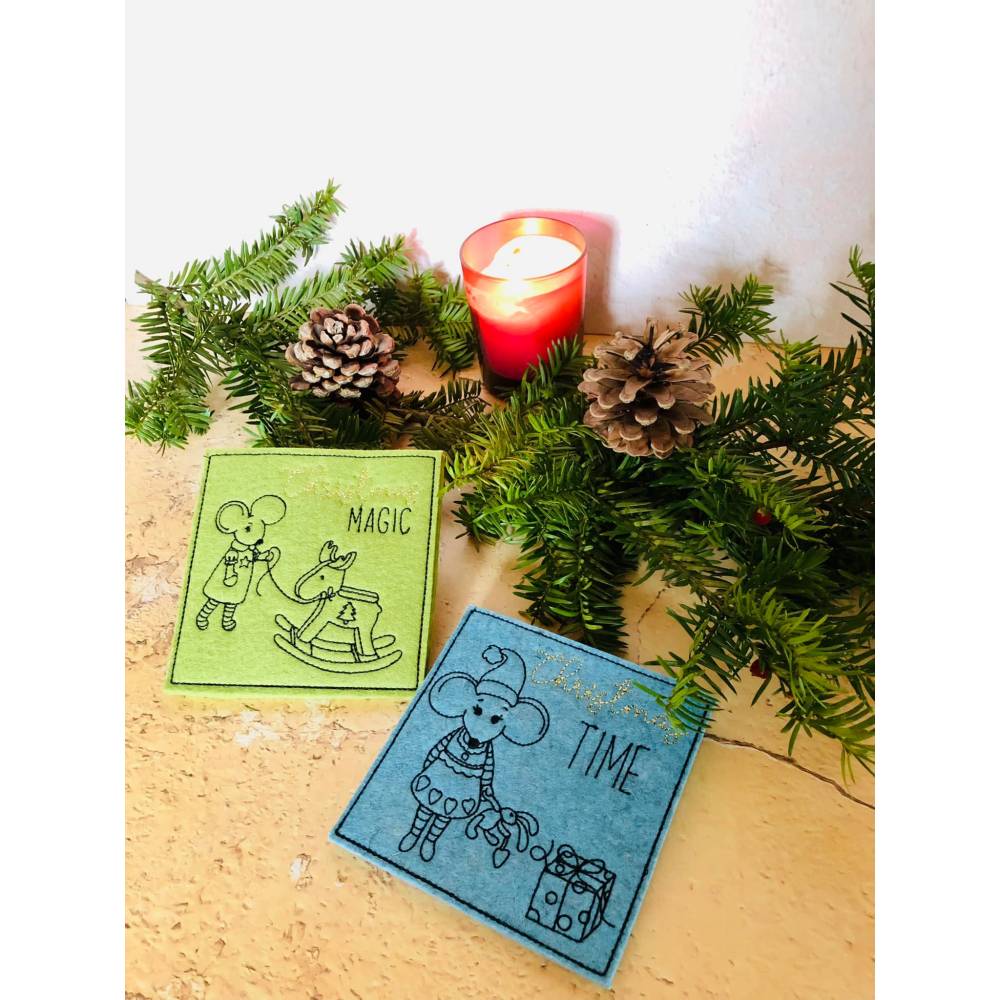 Digitale Stickserie "Little Winter Mouse Mug Rugs ITH" für den 13x18 cm (5x7") Stickrahmen