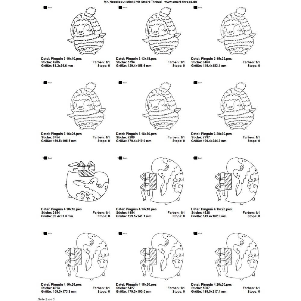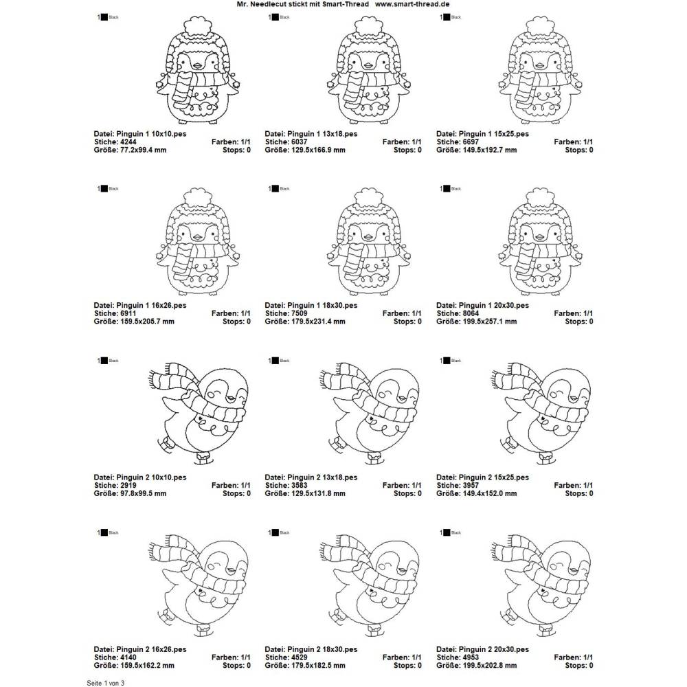 Die genauen Größen und die Stichanzahl der einzelnen Dateien findet Ihr in der Farbansicht bei den Vorschaubildern.