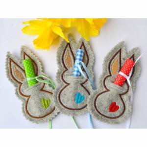 Die Hüllen werden nach dem Sticken außen herum ausgeschnitten. Die Stickdatei eignet sich für Filz oder Kunstleder in einer Stärke von ca. 1-1,5mm.