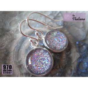 Die Schätze baumeln an Ohrhaken aus feinstem 970 Hill Tribe Silber, dieses hat einen höheren Silbergehalt als Sterling Silber und wird auch von allerempfindlichsten Ohren bestens vertragen. Die Ohrringe werden mit Silikonstoppern geliefert.
