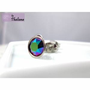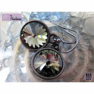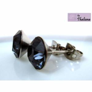 Für diese funkelnden Ohrringe habe ich Swarovski-Kristalle mit einem Durchmesser von 12mm in hochwertig versilberte Fassungen gesetzt. Die Fassungen kommen aus den USA und sehen auch auf der Rückseite sehr wertig aus.