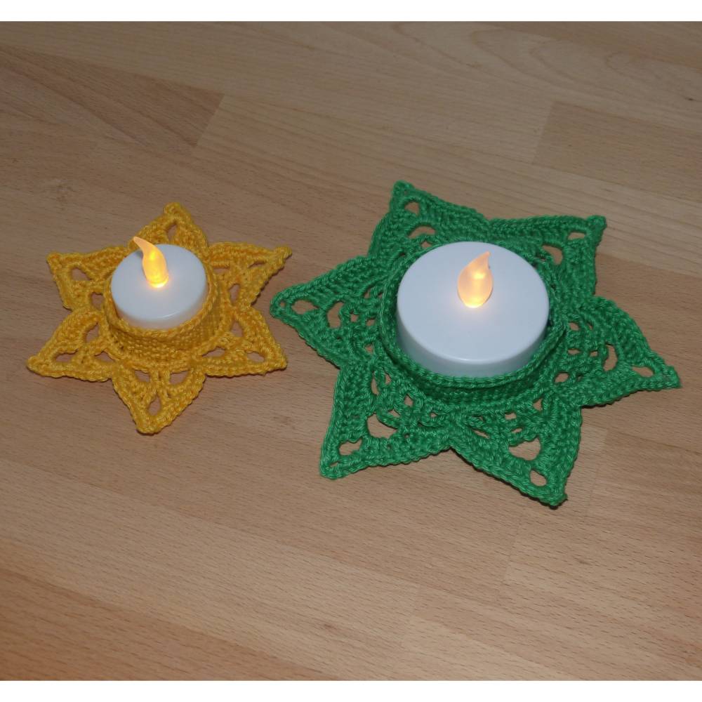 Häkelanleitung Teelichthalter Sterne in 2 Größen, pdf-Datei