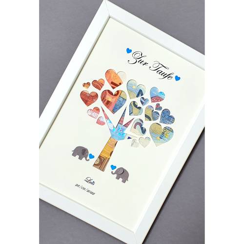 Den gewünschten Geldbetrag können Sie einfach zwischen dem Bild und dem grauen Karton hinterlegen.