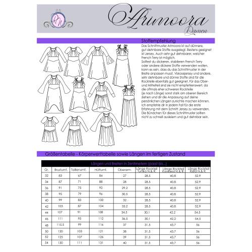 Hinweis: Das Schnittmuster enthält weder Naht- noch Saumzugabe und ist auf eine Körpergröße von 164-165cm ausgelegt. Im Schnittmuster enthalten sind die Nähgrößen 32 bis 48. Einfache Anpassungen sind im Ebook beschrieben. In den Dateien findest du die A4-Versionen zum Ausdrucken, eine Großdruckdatei sowie die Beamerdatei - alle Dateien inkl. Ebenen zum Ein- und Ausblenden der Größen.