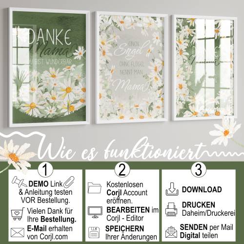 Liebe Kunden ab sofort können alle Druckvorlagen mit Corjl in DEUTSCHER Sprache bearbeitet werden. Bitte klicke den kostenlosen DEMO Link in den Beschreibungen zum Testen. Hier ein Beispiel, wie Druckvorlagen personalisiert werden können: https://www.corjl.com/d/34N3IK