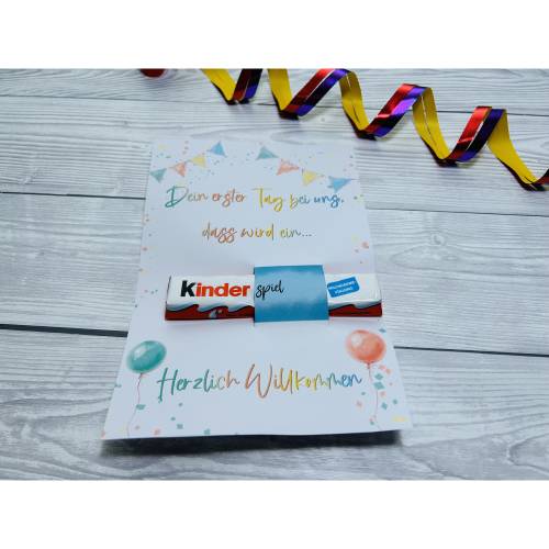 Dekoration und Schokoriegel dienen nur der Präsentation und sind nicht im Angebot enthalten. Ich habe strukturiertes und leicht funkelnde Pappe verwendet, Du kannst natürlich auch einfaches Papier nehmen.