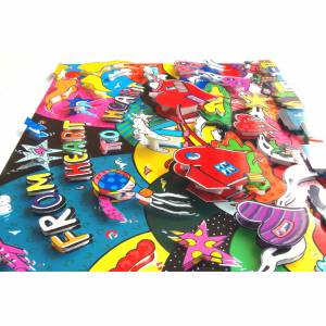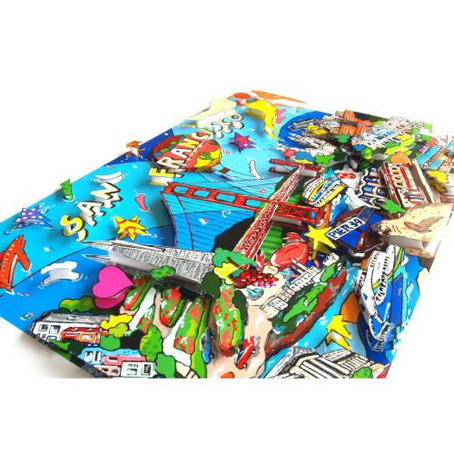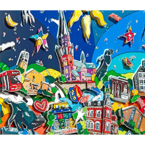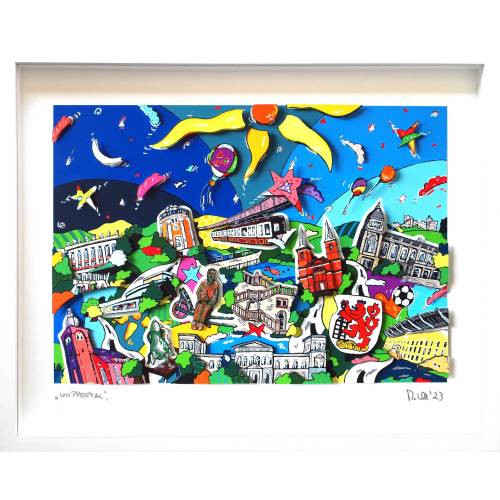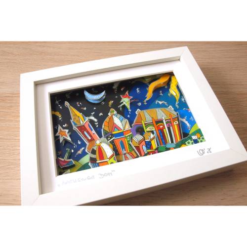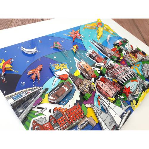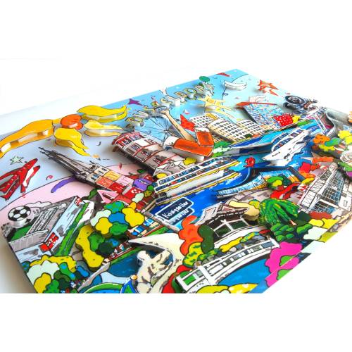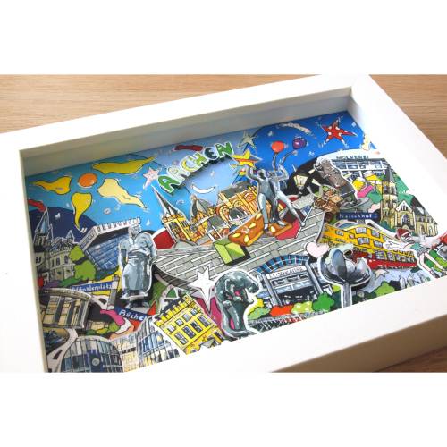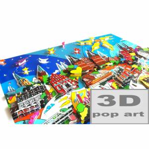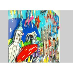 So entstehen zum einen Gemälde ( Unikate ) in verschiedenen Formaten, zum anderen die 3D - Stadtansichten, Tierkreiszeichen etc., aufwändig von Hand geschnitten und in bis zu 5 Ebenen gearbeitet, was den Bildern eine ganz besondere Dynamik und Ausdruckskraft verleiht. Alle 3D - Arbeiten sind in Digitalfarbdruck - Qualität oder Fine Art erhältlich, - Rahmung nach Wahl, - personalisierbar mit Name, Widmung und Geburtsdatum.