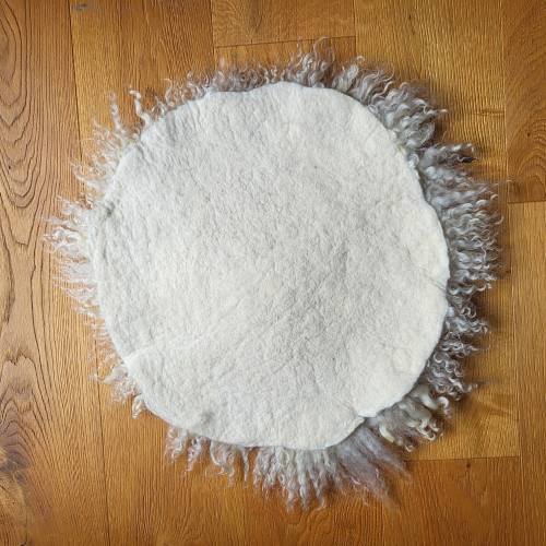 Faszinierend für mich ist das eigenhändige Verbinden und Verfilzen von Wollfasern es bietet nahezu alle Möglichkeiten der plastischen Verformung. Der hier angebotene Filz entsteht durch einen handwerklichen Prozess indem mittels Wasser und Seife die ausgelegten Wollfasern von Hand gewalkt, geknetet und modelliert werden, bis ein stabiler, fester Zusammenhalt dieser Fasern erreicht ist. Dieser Prozess ist nicht mehr umkehrbar, so dass dieser Filz nun sehr widerstandsfähig und belastbar ist.