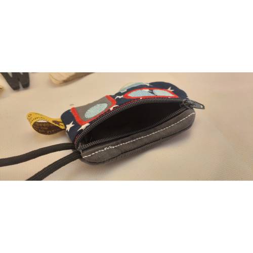 Schlüsseltasche Unikat Retro Blume bestickt – Reißverschlusstasche & Minibörse aus Baumwolle Upcycling €9,99*