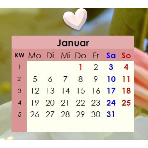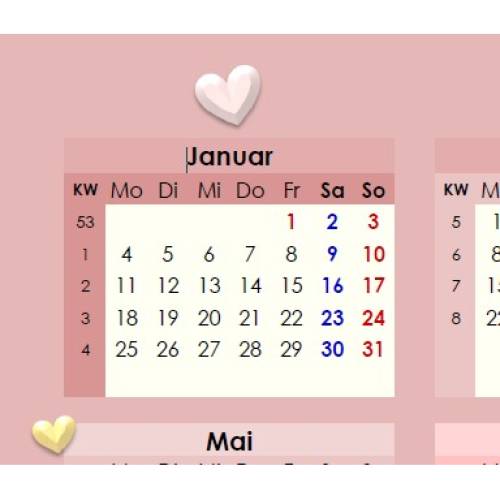 Jahreskalender 2025 auf einen Blick in Roséfarben