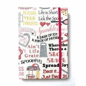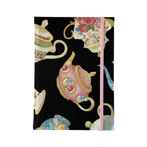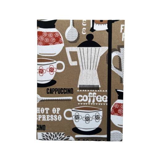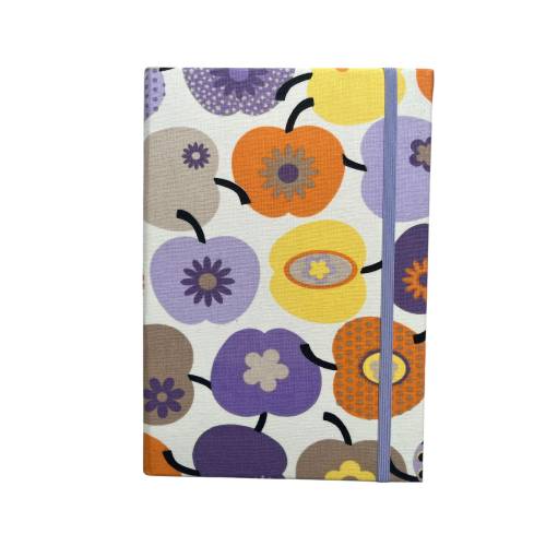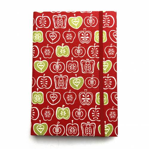 Alle Notizbuchrohlinge werden von Hand in ausgewählte Stoffe eingebunden. Danach werden sie mit farblich abgestimmten Verschlussgummis versehen, die mithilfe von Ösen auf der Rückseite befestigt werden.