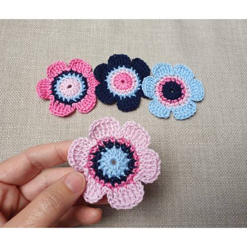 Die Häkelapplikationen können bei 40 Grad in der Maschine gewaschen werden.