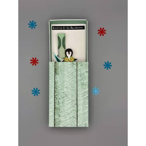 Im Laufe der Zeit entwickelte ich einige Ideen, wie das Geld befestigt werden kann und es macht mir Spaß immer neue Ideen zu verwirklichen.